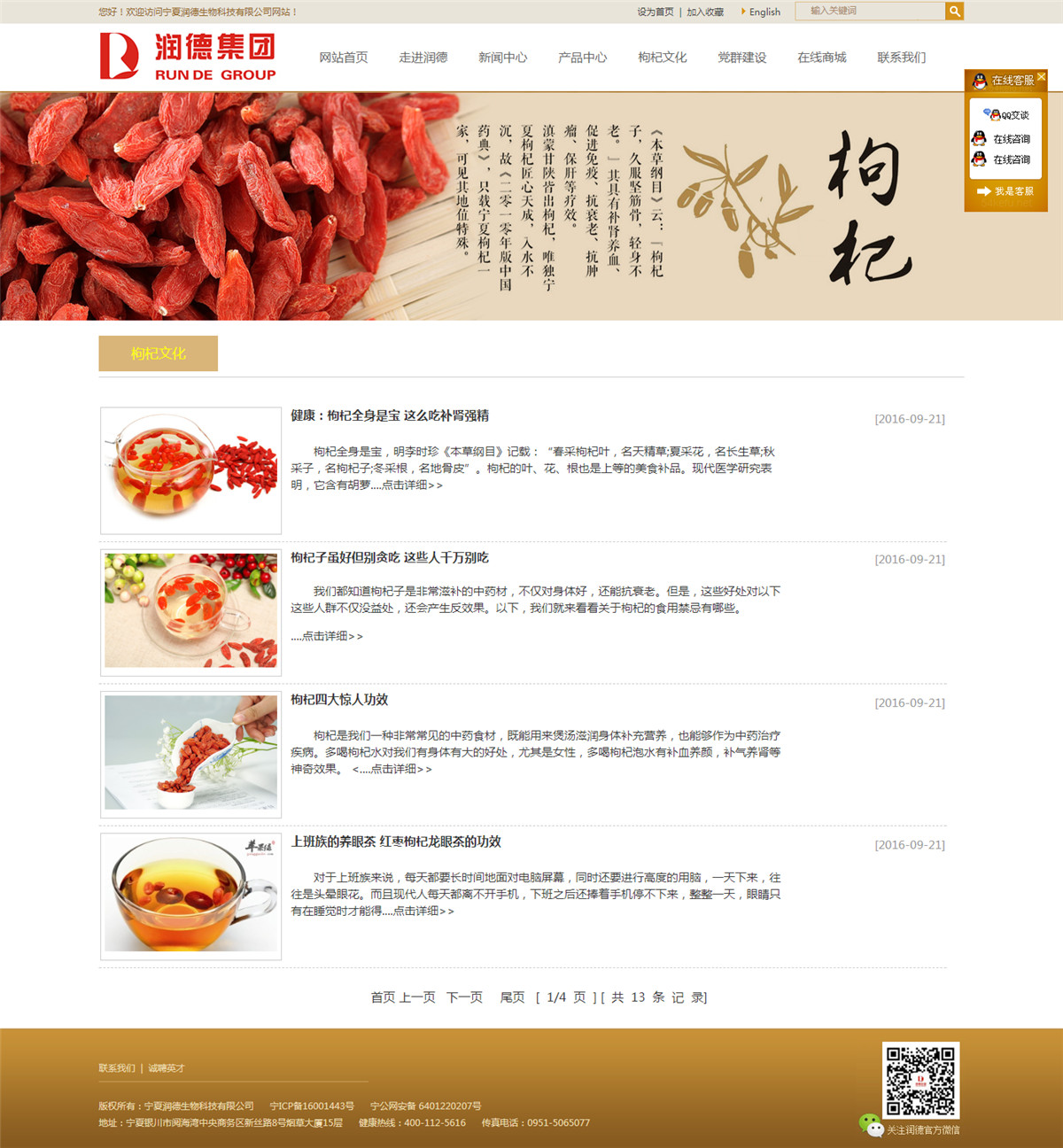 寧夏潤(rùn)德集團(tuán)成立于2013年,是一家專業(yè)從事枸杞種植、研發(fā)、加工、營(yíng)銷、生態(tài)觀光五位一體的全產(chǎn)業(yè)鏈現(xiàn)代化農(nóng)業(yè)綜合型企業(yè)